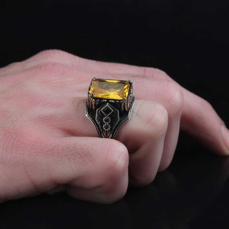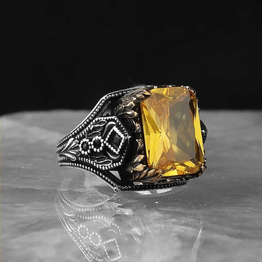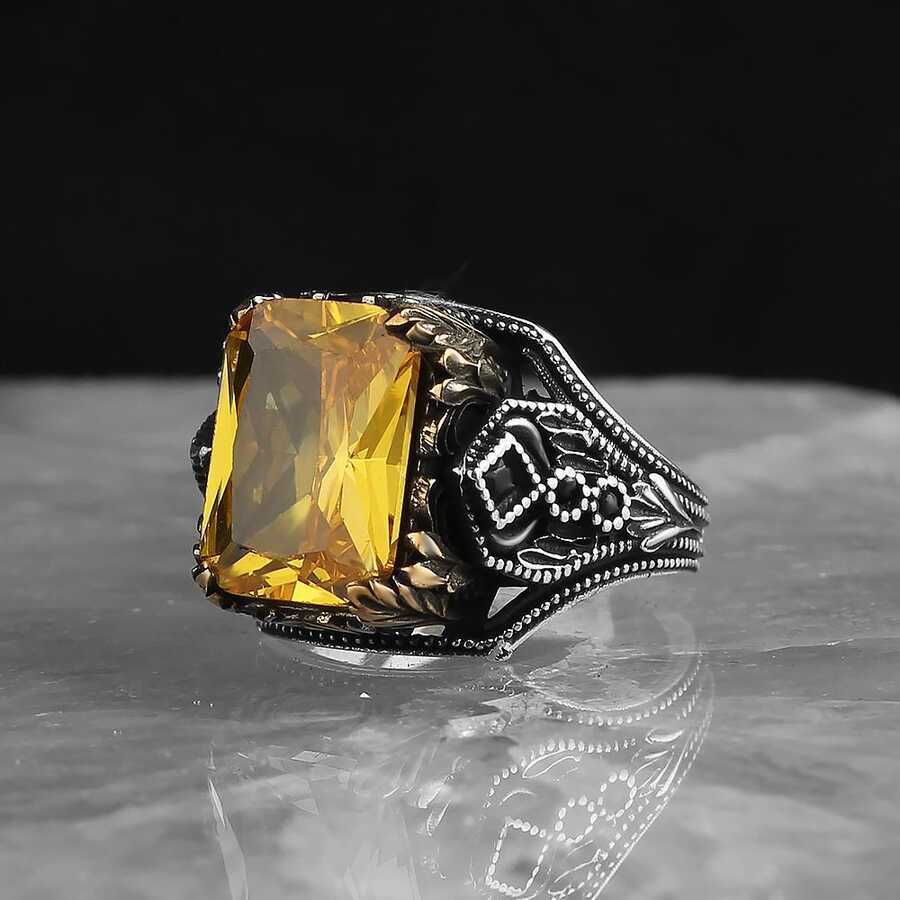 خاتم رجالي من الفضة الإسترليني عيار 925 بحجر السترين
