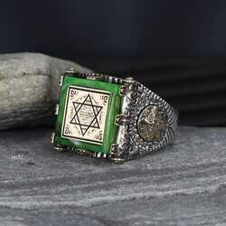 خاتم رجالي من الفضة الإسترليني عيار 925 بختم حجر عنبر سليمان