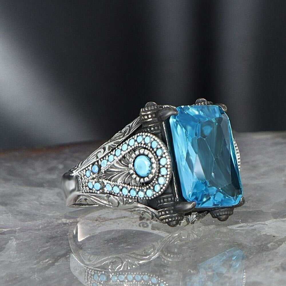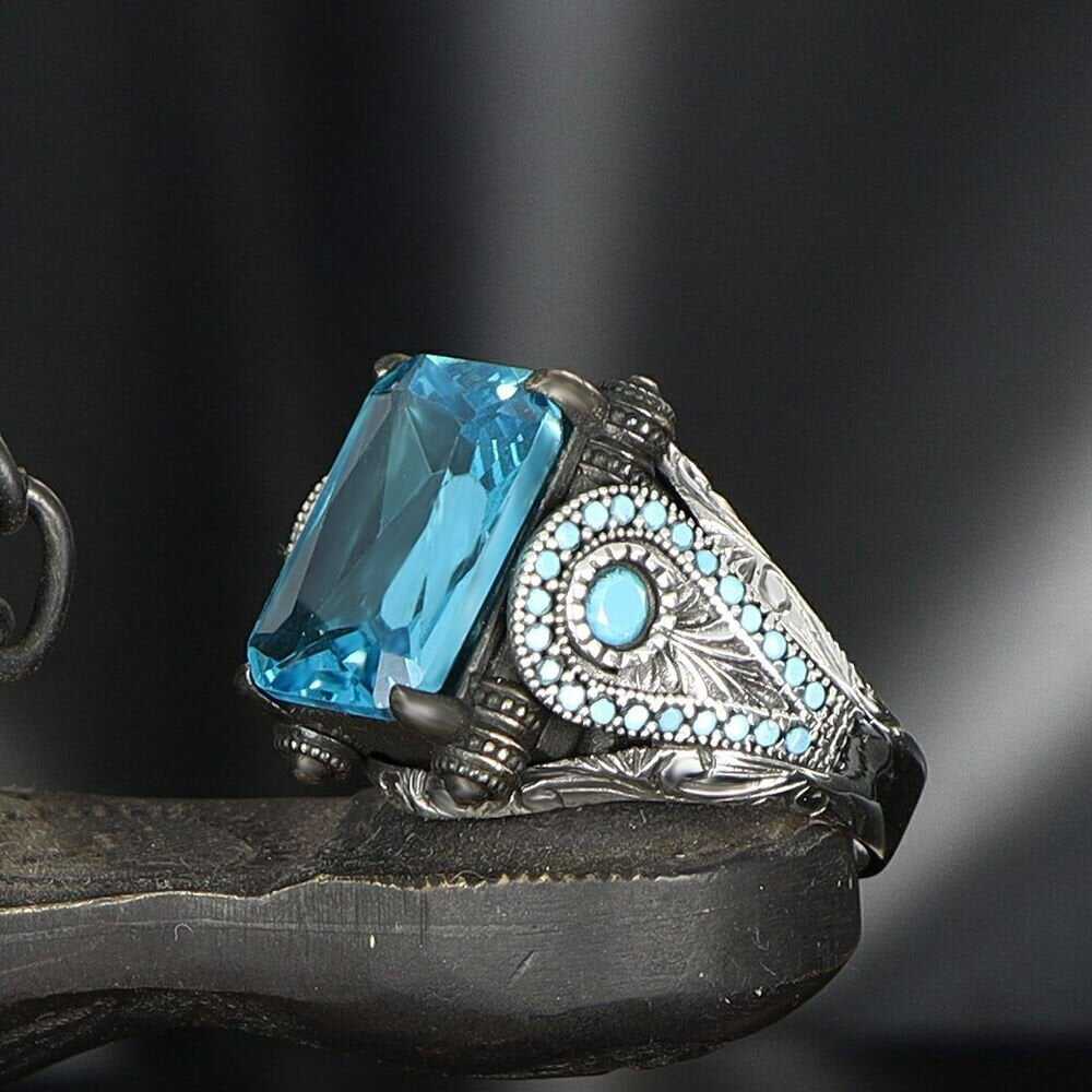 925 Sterling Silver Men's Ring With Blue Topaz Stone