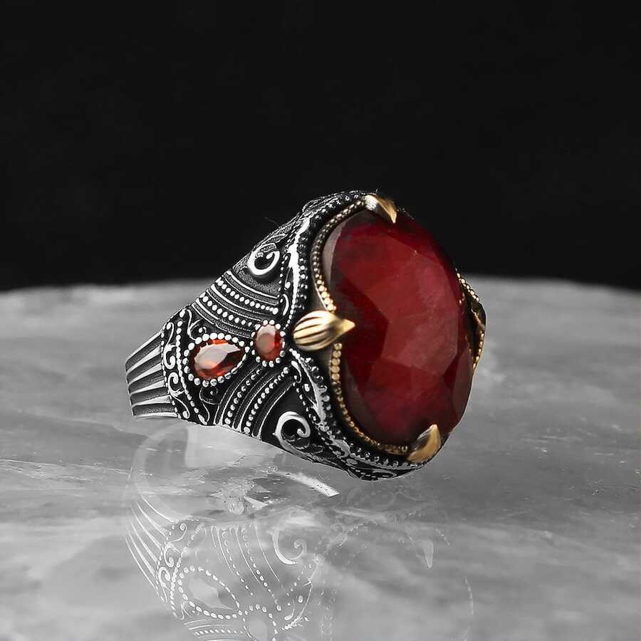 925 Sterling Silver Men's Ring With Ruby Stone