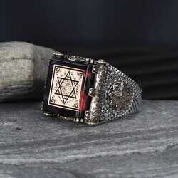 925 Sterling Silver Men's Ring With Seal Of Suleyman Amber Stone