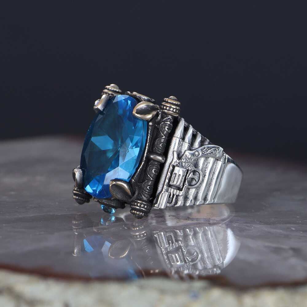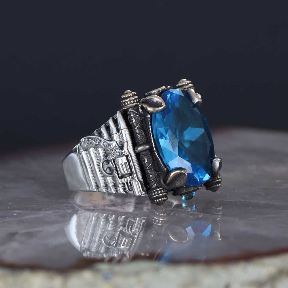 Armed Model Aqua Marine Stone 925 Sterling Silver Men's Ring