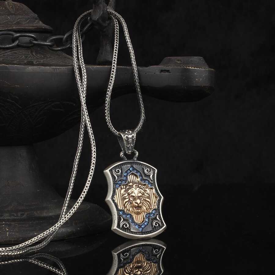 قلادة رجالية من الفضة الإسترليني عيار 925 مع رمز الأسد