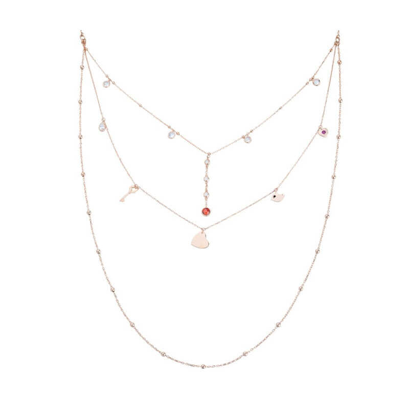Biryole Stone Long Chain Silver Necklace