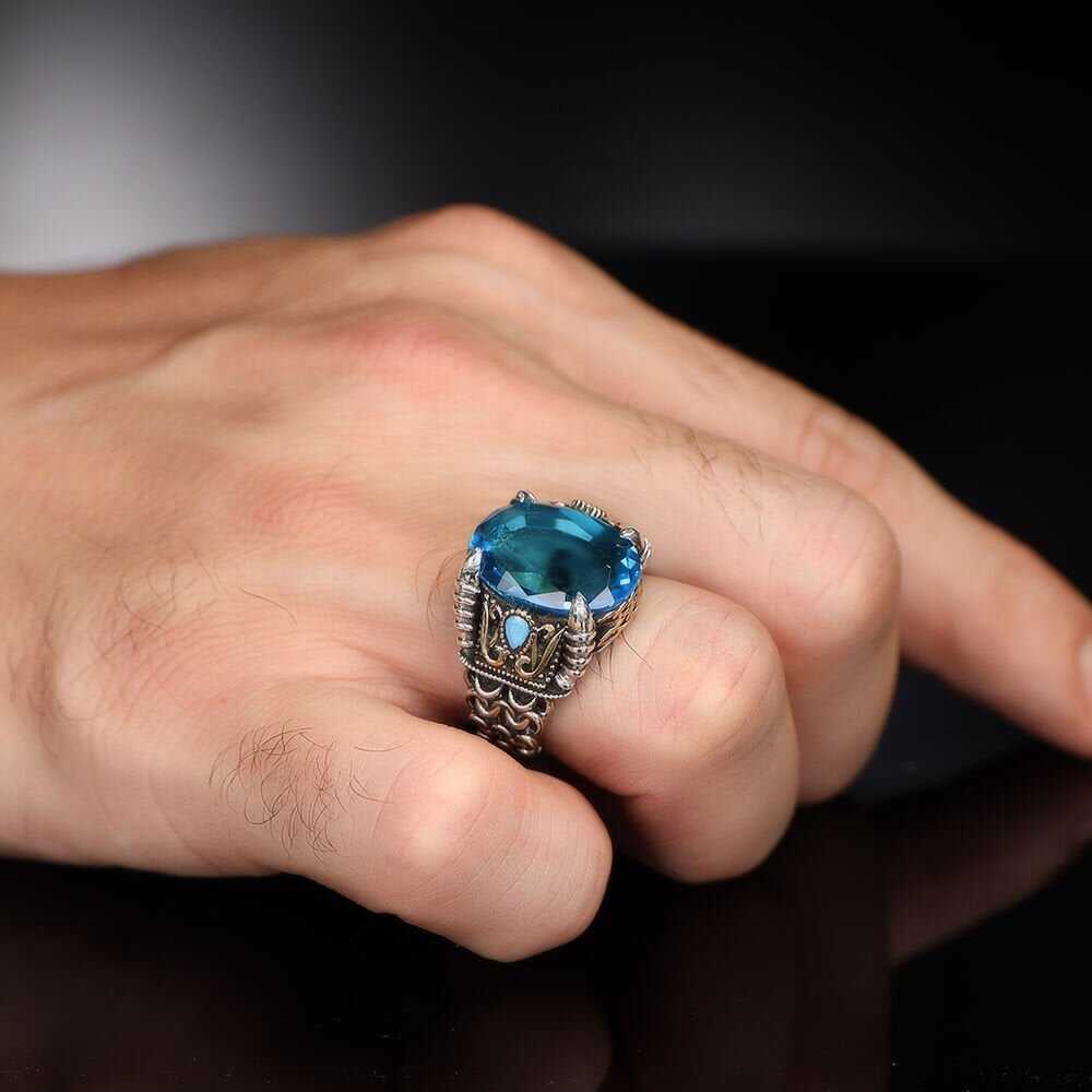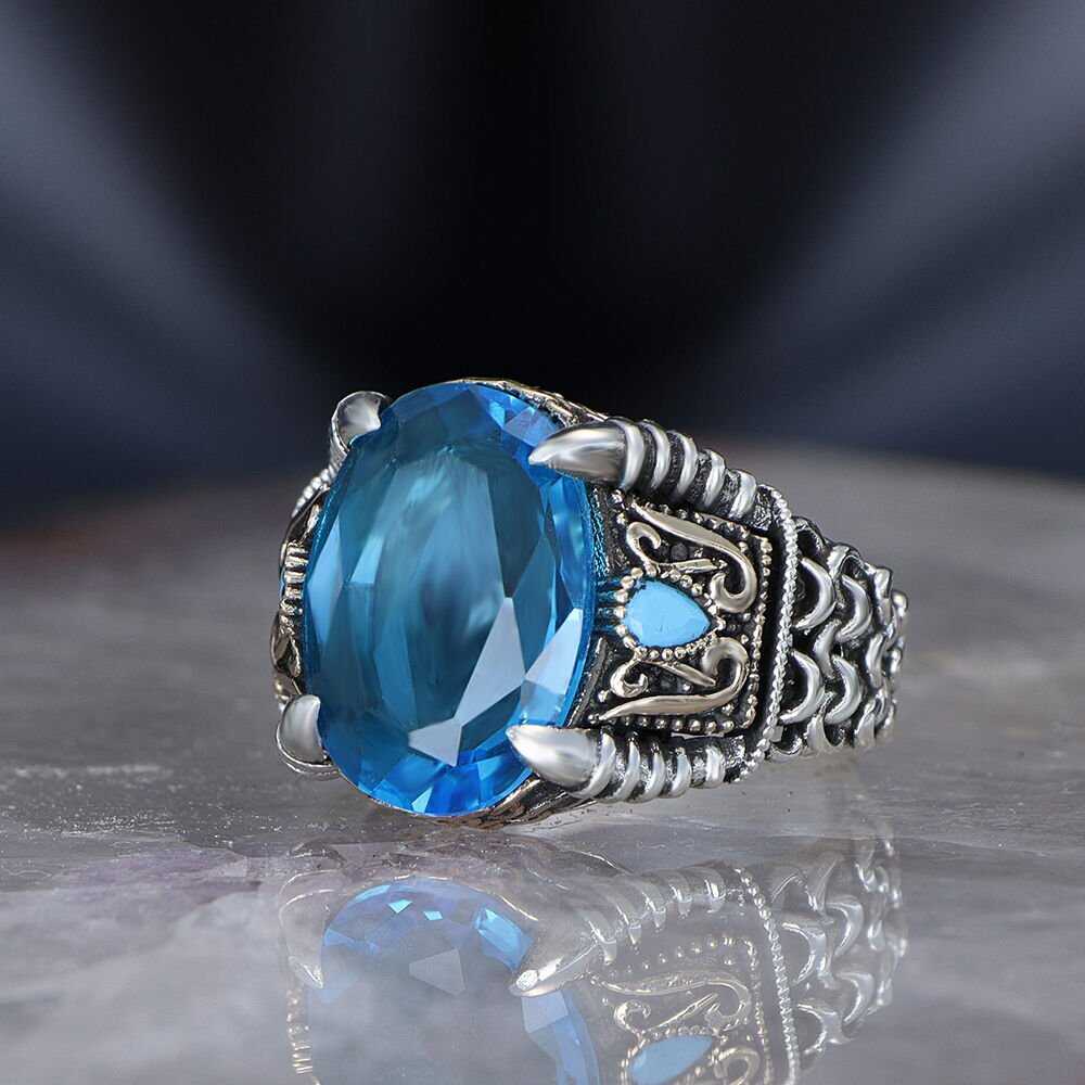 سلسلة سلسلة 925 خاتم فضة رجالي التوباز الأزرق