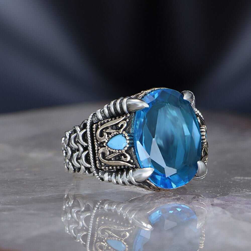 Chain Series 925 Sterling Blue Topaz Men's Silver Ring