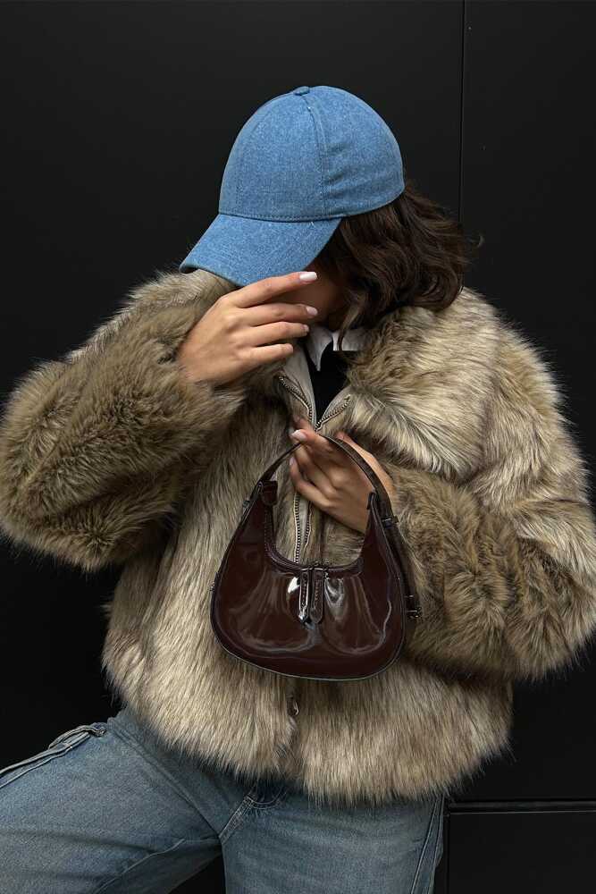 Product FeaturesDimensions;Width: 21 cmLength: 13 cmWidth: 6 cmStrap Length: 22 cmUsage Area: Hand, ShoulderMaterial: Shiny Patent Leather FabricInside is Lined and has a Single Compartment.Made of Durable Metal Accessory.Strap is Adjusted Gradually.