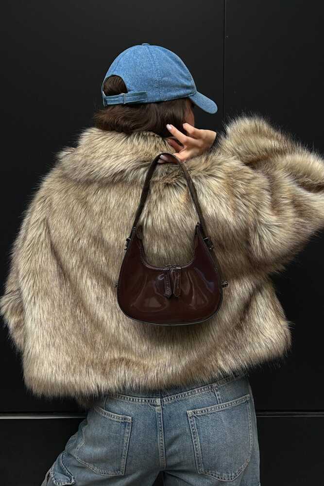 Cherry Patent Leather Bitter Coffee Baguette Bag