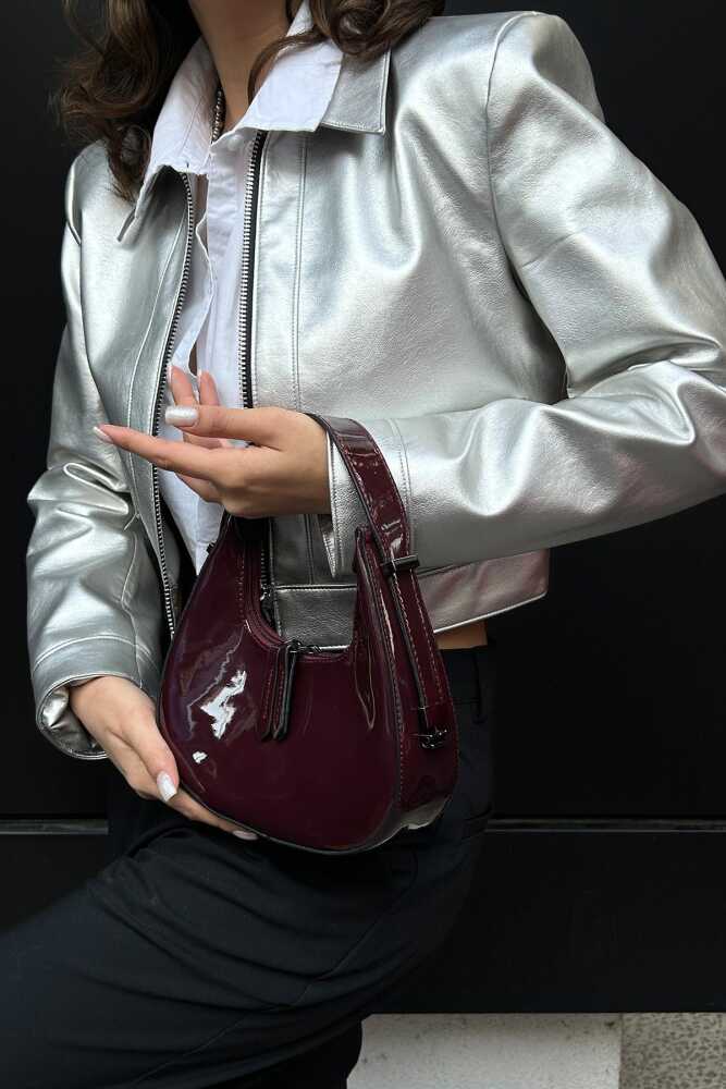 Product FeaturesDimensions;Width: 21 cmLength: 13 cmWidth: 6 cmStrap Length: 22 cmUsage Area: Hand, ShoulderMaterial: Shiny Patent Leather FabricInside is Lined and has a Single Compartment.Made of Durable Metal Accessory.Strap is Adjusted Gradually.