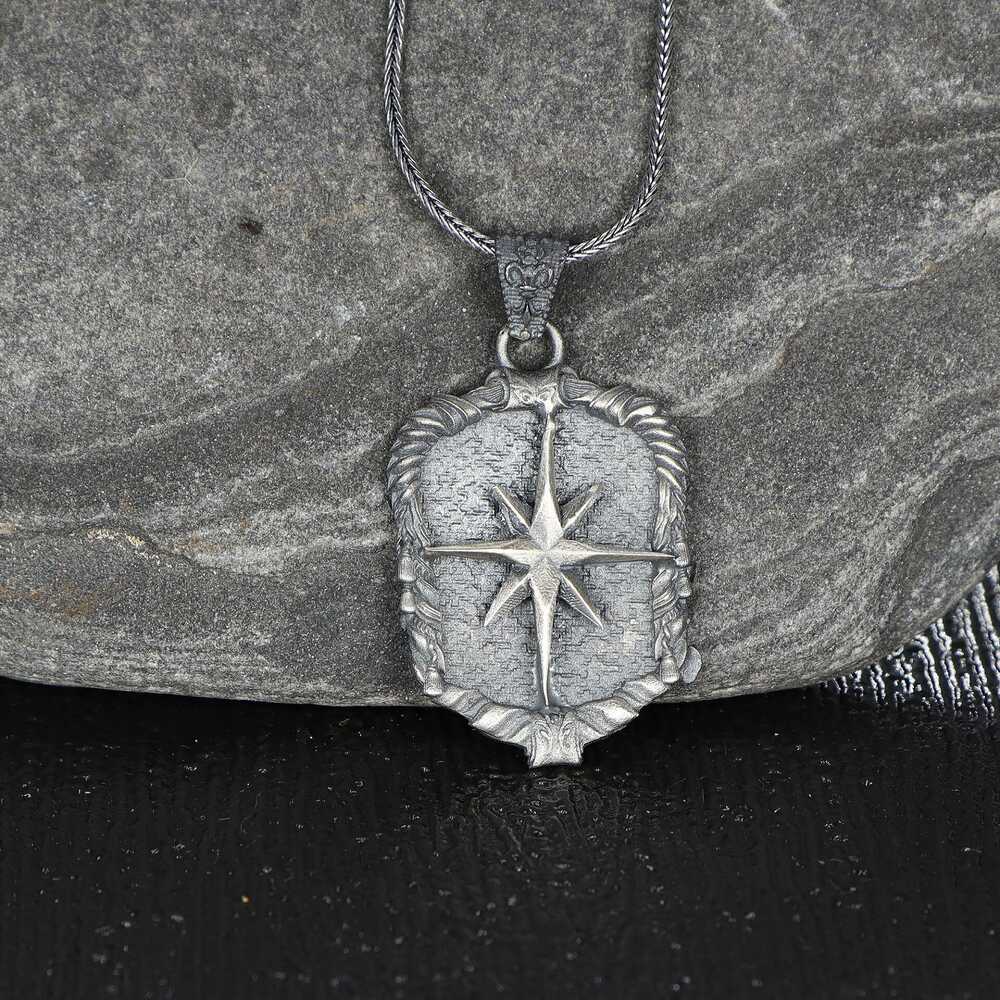 Compass Model 925 Sterling Silver Men's Necklace