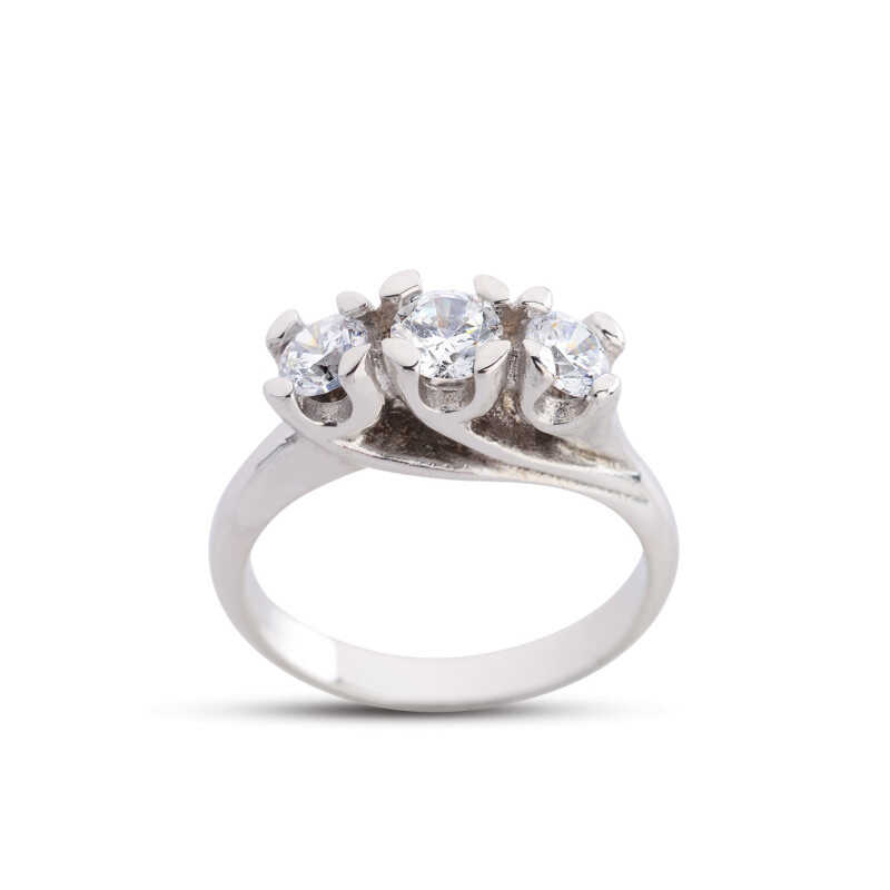 Diamond Mounted Tria Rose White Silver Ring