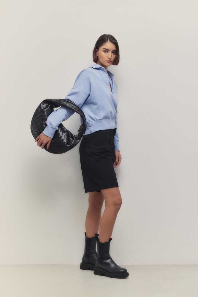 Product Features Dimensions: Length: 23 cm Width: 38 cm Width: 10 cm Strap Length: 25 cm Usage Area: In Hand, Shoulder Material: Faux Leather Fabric Inside is Lined and has a Single Compartment. Made of Durable Metal Accessory. Zipper Closure.