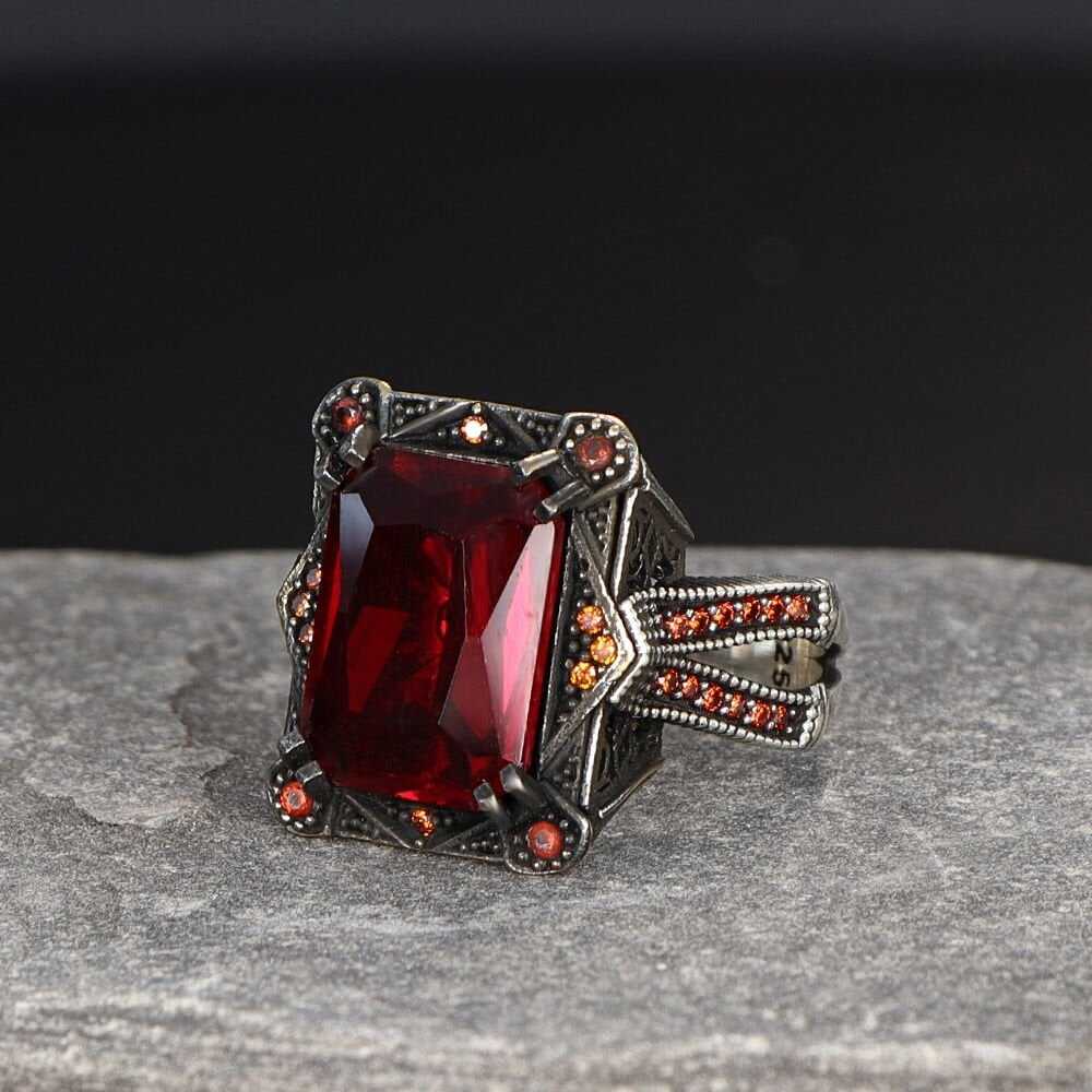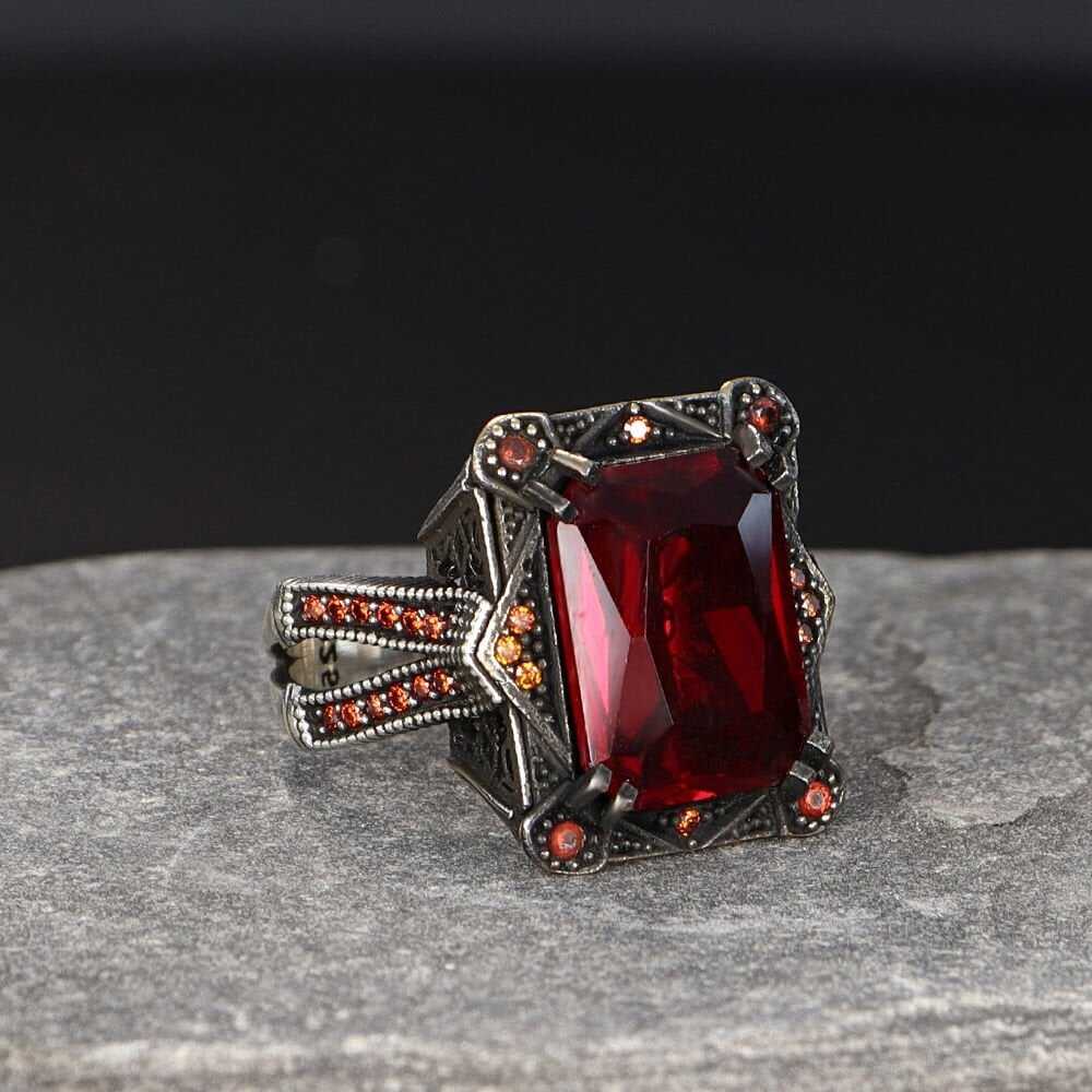 King Chain Model Zircon Stone 925 Sterling Silver Men's Ring