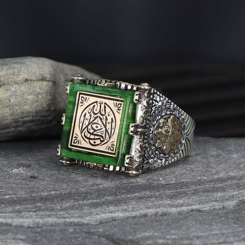 La Galibe İlallah Written Amber Stone 925 Sterling Silver Men's Ring