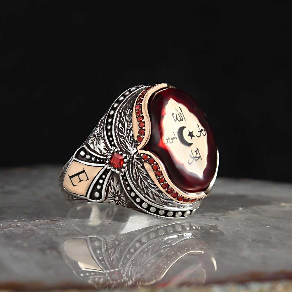 Lettered Amber Stone Ottoman War Flag 925 Sterling Silver Ring