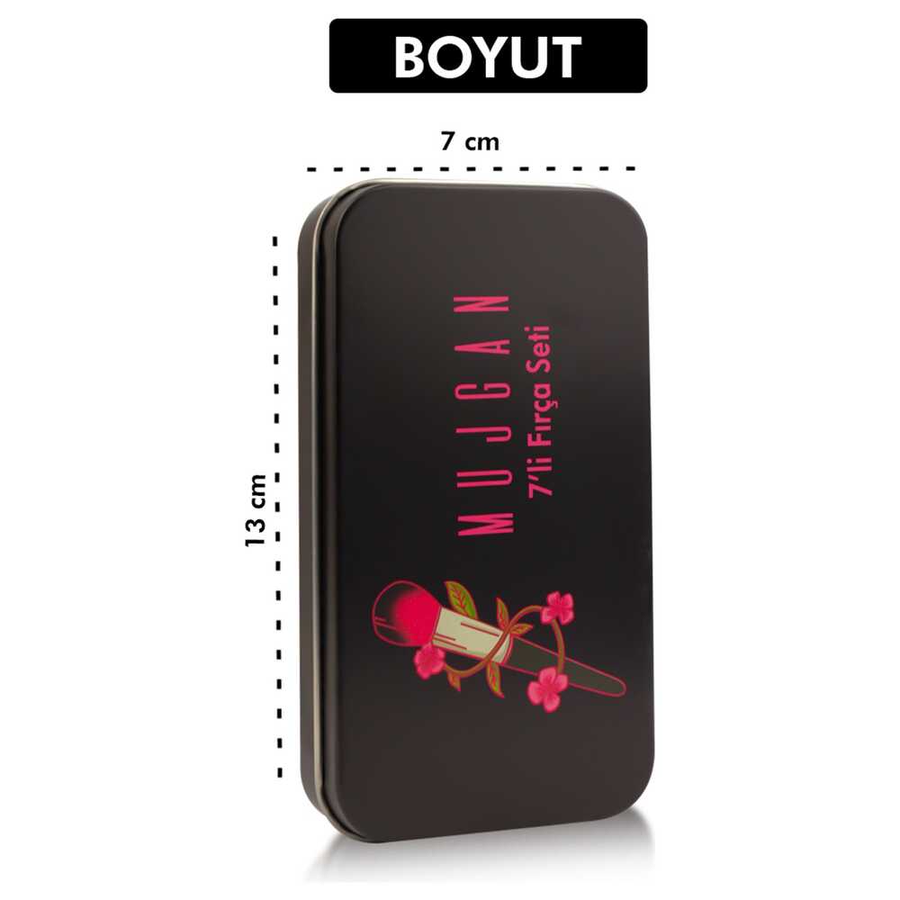 V2 Black Stylish 7 Piece Metal Makeup Brush Set You can store them safely thanks to the tin brush box. It is designed to be suitable for professional and daily use. Contains 7 makeup brushes. They are: foundation brush, blush brush, eye shadow brush, shadow brush, fine line brush and two blending brushes. Product size 11 cm.