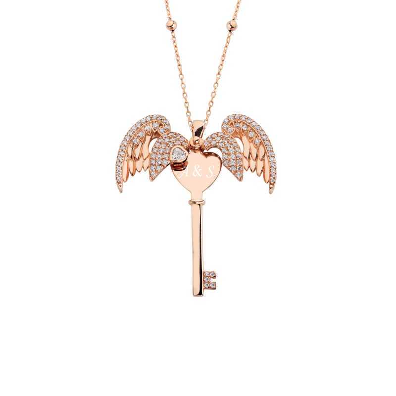 Name Key Silver Necklace With Angel Wings