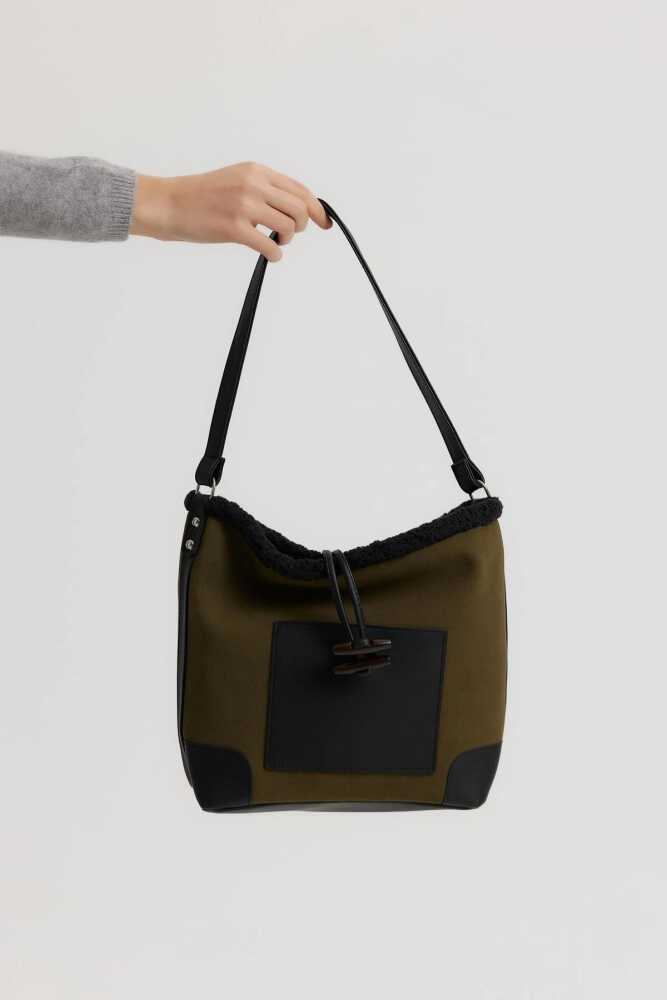 Product FeaturesDimensions:Length: 25 cmWidth: 33 cmWidth: 10 cmStrap Length: 25 cmUsage Area: Hand, ShoulderMaterial: Suede FabricInner Part is Lined and Consists of a Single Compartment.Made of Durable Metal Accessory.Button Closure.