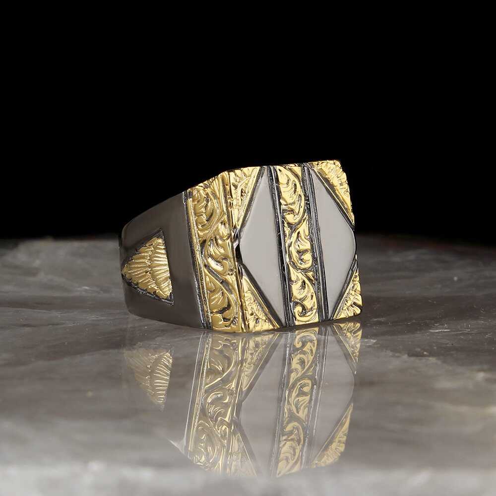 Rhodium Plated Handmade Pencil Workmanship 925 Sterling Silver Men's Ring