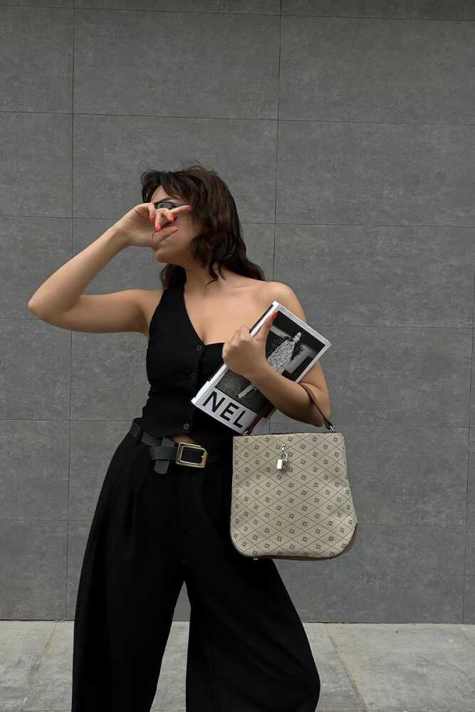 تريندبريز مقفل مشبك حقيبة الكتف البيج