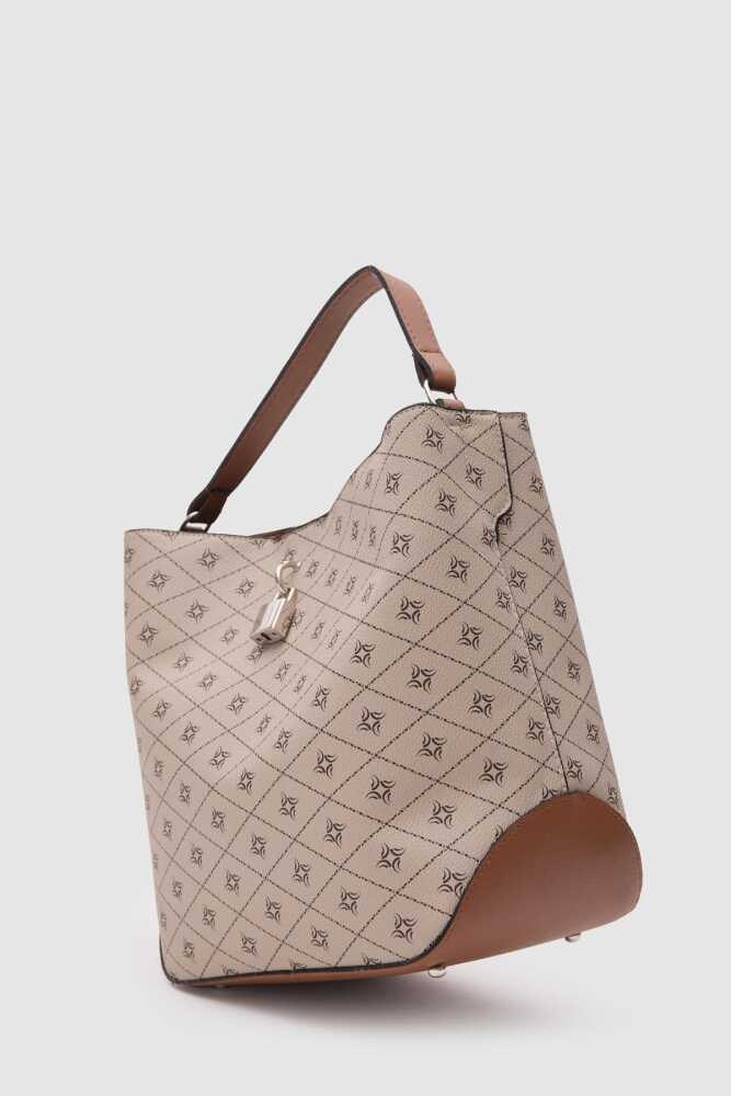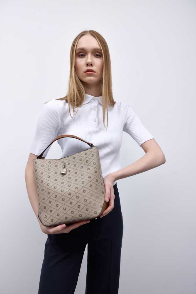 Trendbreez Locked Monogram Beige Shoulder Bag