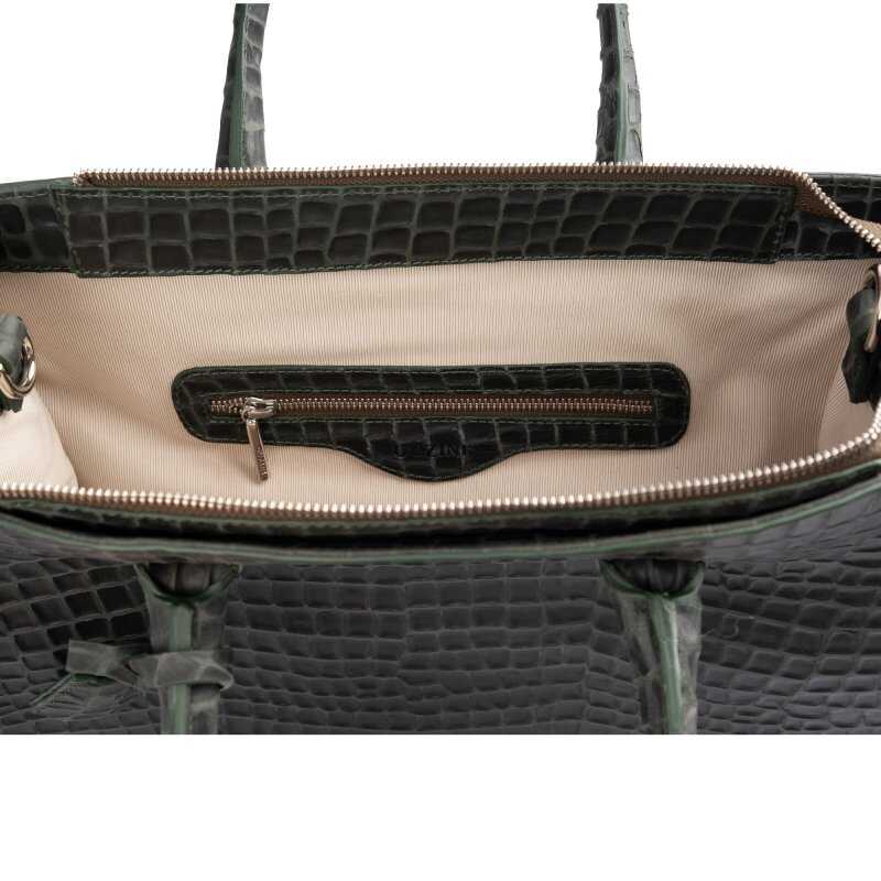 Guzini 8101 Women's Genuine Leather Handbag – Croco Dark Green